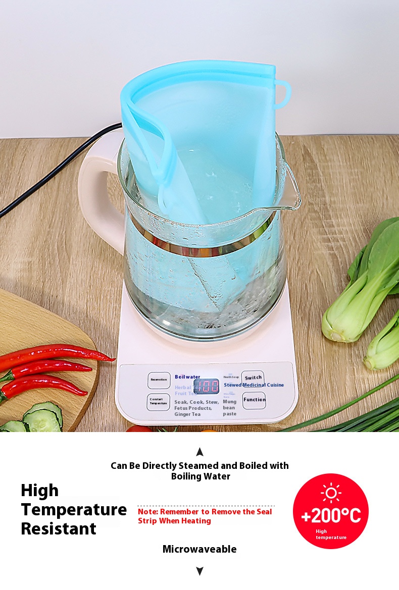 One of the characteristics of silicone material is its high temperature resistance.The cooked food taken out from the freezer can be thawed directly, together with the silicone food storage bag,