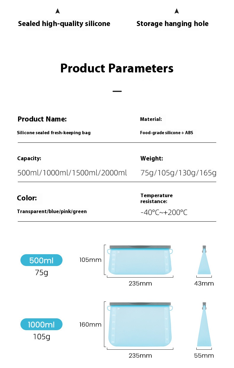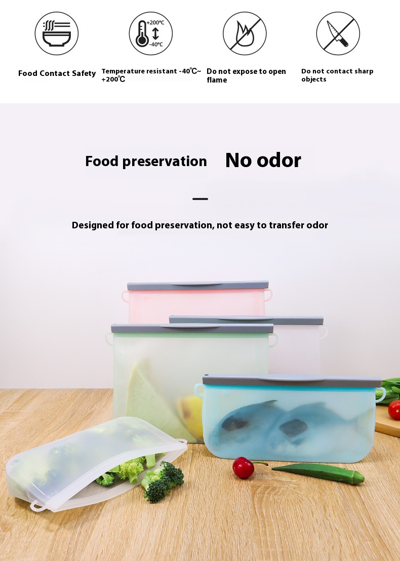 Silicone food storage bags are safe, non-toxic, and reusable. They are easy to clean, have good sealing performance, and can ensure that food does not transfer flavors.